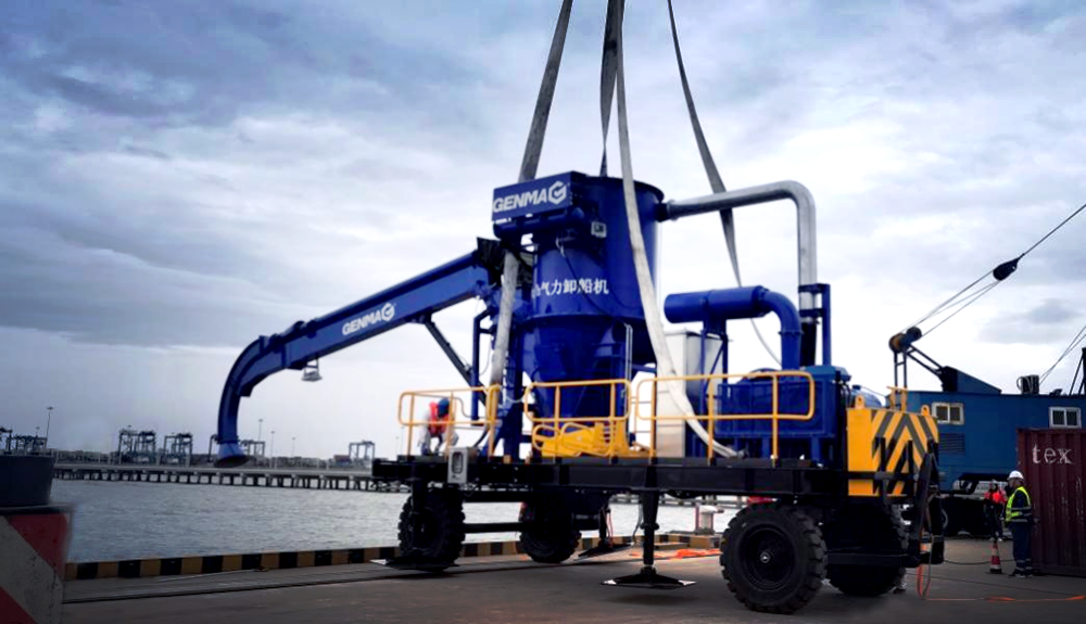 近日,由潤邦重機為九江中糧傾力打造的兩臺GENMA糧食氣力式卸船機(簡稱:卸船機)順利交付。該設備主要用于大豆等糧食作物的卸船作業。