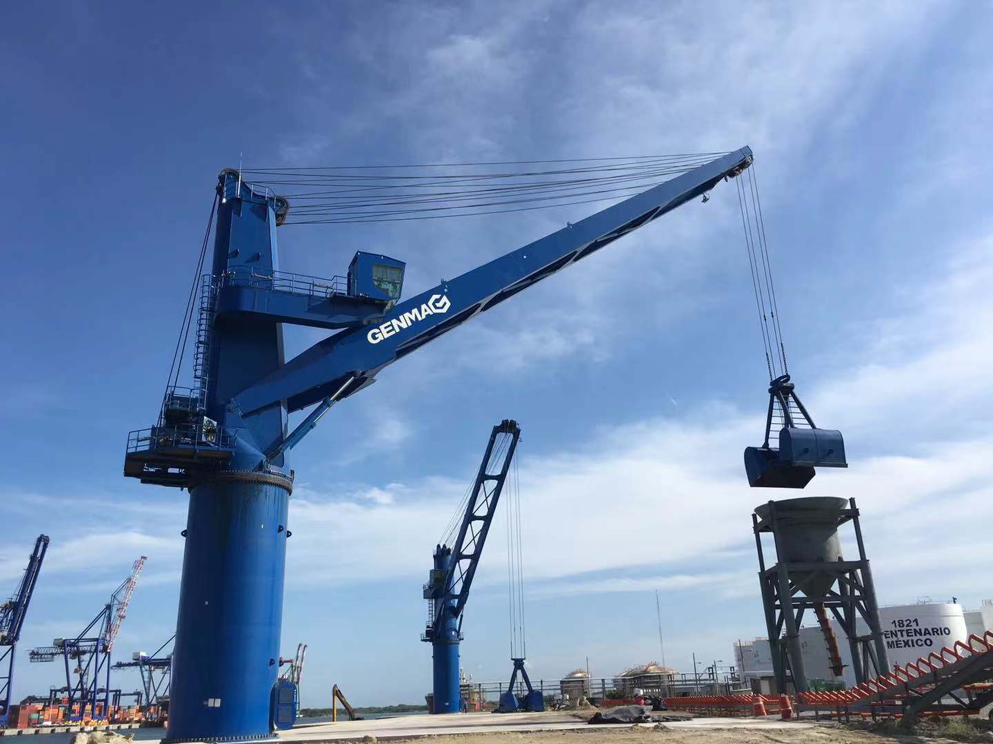 近日,由潤邦重機為墨西哥客戶傾力打造的兩臺GENMA抓斗起重機順利交付。此次交付的設備將主要用于農業及礦物散貨的抓取作業。